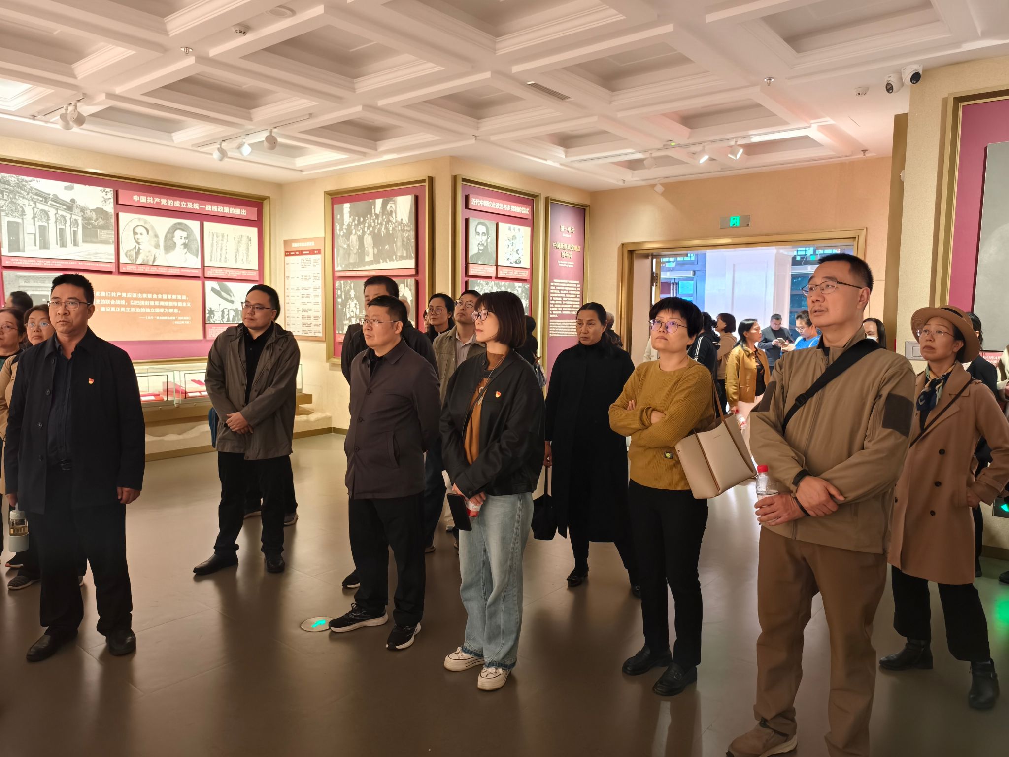 活动第一阶段,双方成员集体前往中国民主党派历史陈列馆,依次参观了“中国新型政党制度”“中国民主促进会”“特园”等主题展馆。通过系统回顾我国新型政党制度的发展脉络,深入学习各民主党派与中国共产党风雨同舟、携手前进的辉煌历史,大家深刻体悟了“爱国、民主、团结、求实” 优良传统。民进展区的专题陈列进一步增强了民进会员的政治认同与组织归属感。双方围绕多党合作的历史意义展开深入交流,增进了理解,凝聚了共识。