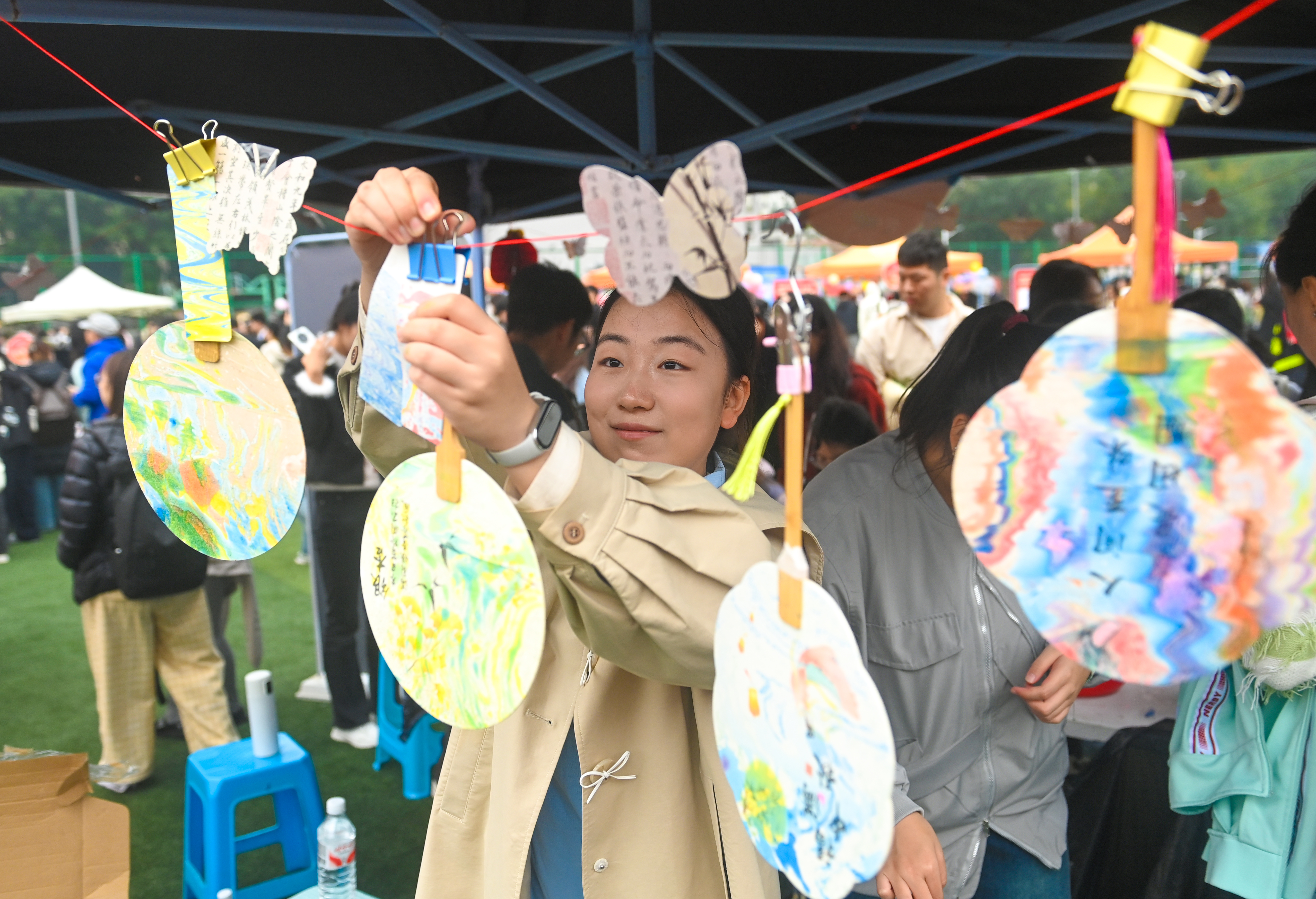 今年的游园会设置了集民族美食品尝、民族舞蹈学习、民族乐器体验等于一体的20余个民族风情伞棚、4个铸牢中华民族共同体意识宣传教育特色伞棚和4个非遗文化体验伞棚,所有伞棚以“同心圆”方式排列,象征着各民族像石榴籽一样紧紧抱在一起。