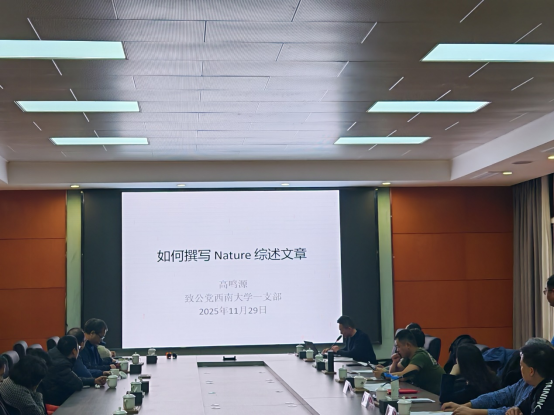 在座谈会上,致公党北碚区委会田永中副主委领学党的二十届四中全会精神、重庆市委六届八次全会决议,陈云副主委传达了北碚区委十三届九次全会精神和近期工作任务,梁学友副主委通报了今年的党员发展情况并介绍了新党员,党员代表西南大学工程技术学院高鸣源副教授做“如何撰写Nature综述文章”的经验分享。