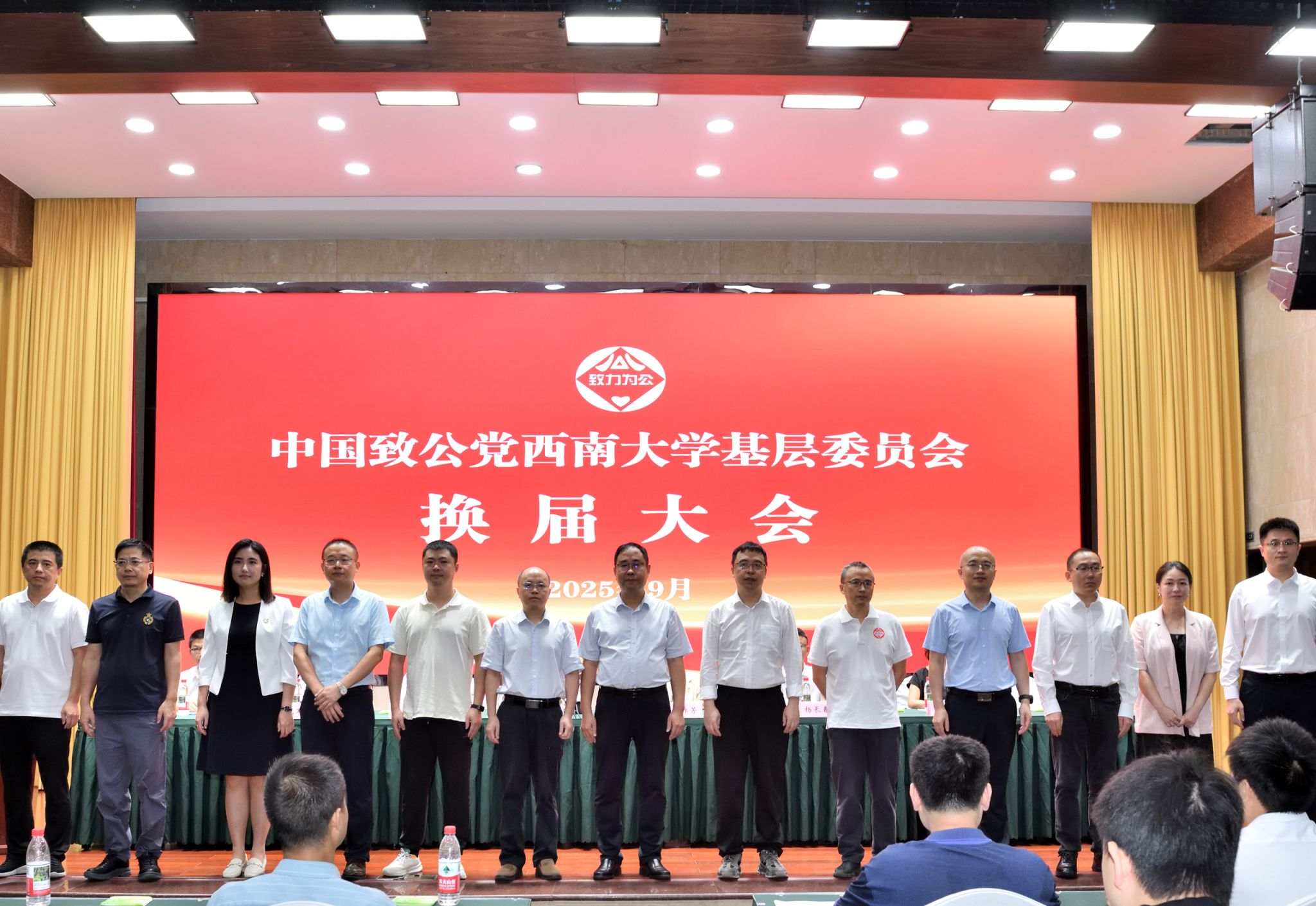 9月14日,致公党西南大学基层组织举行换届大会。会议听取并审议了肖丹主委代表第一届基层委员会所作的工作报告,选举产生了第二届基层委员会委员,邹祥当选为主任委员,王翊、杨明金、罗群力、赵刘斌当选为副主任委员,王正攀、付琛、丁红雷、左倩、黄菁、孙玉成、孙雅望、韩旭军当选为委员。致公党重庆市委会专职副主委杨作芳,市委会常委、北碚区委会主委胡昌华,市委会组织处处长王煜,中共北碚区委统战部常务副部长杨长春,致公党北碚区委会专职副主委陈云等到会祝贺指导。西南大学党委副书记武好明出席大会闭幕式并讲话。
