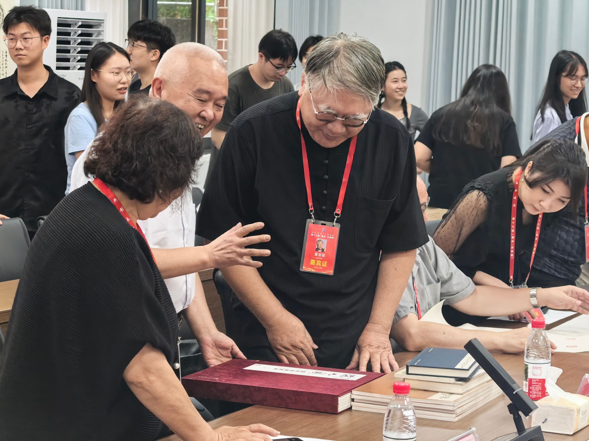 交流会上,学校中国书法研究所所长曹健教授、美术学院徐海东副教授先后向来宾介绍学校书法学科传承和代表性成果产出情况,参会人员共同交流书法篆刻创作心得、技法特点,进行深度艺术对话。活动中,学校还向台湾艺术家代表团赠书。